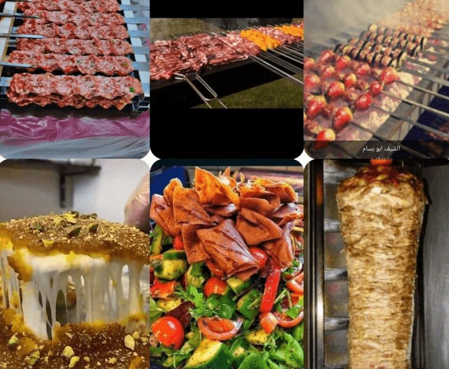 الأطباق الرئيسية: مثل أطباق المشاوي المتنوعة والتي من أشهرها اللحم بعجين، وأطباق المسخن والشاورما اللبنانية.