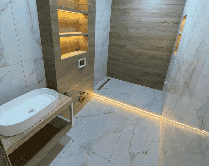 الحفاظ على الميل الذي تبلغ نسبته 1% عند تركيب أرضيات الحمام؛ حيث إن ذلك يحافظ على خصوصية انسياب الماء إلى المنهل لمنع الرطوبة، ويجب التأكد من أن معلم سيراميك الذي يقوم بالمهمة يقوم بذلك.