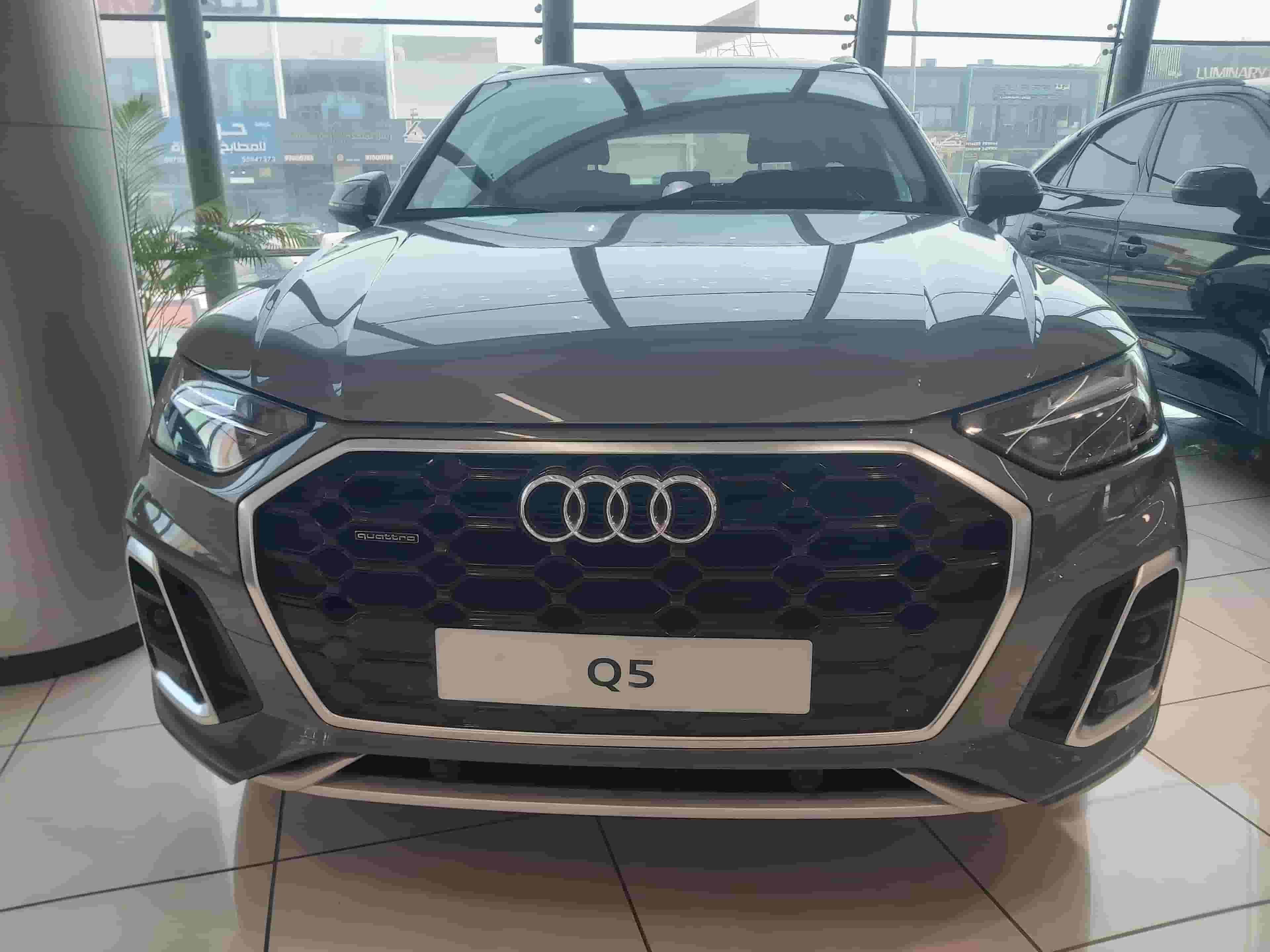 تمتاز سيارة اودي q5 بالتصميم الرياضي الأنيق، ويظهر ذلك بشكل واضح في الخطوط الديناميكية التي توجد أعلى غطاء المحرك الكبير، كما تأتي هذه السيارة بمصابيح أمامية تعمل بتقنية HD Matrix LED، وهي تقنية اختيارية، أما التقنية الأساسية فهي LED، كما يوجد أيضاً مصد أمامي مميز وشبك أفقي ضخم من الكروم الفضي، وتم إحاطة ذلك بخط واضح من الكروم؛ مما يعطي مقدمة اودي q5 مظهراً جذاباً.
