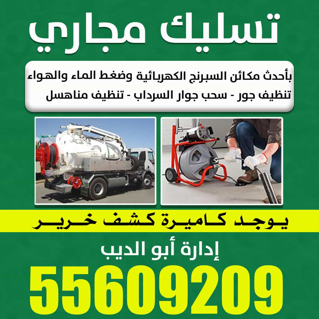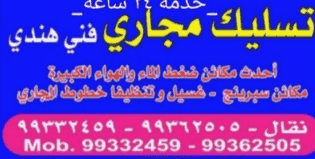 ويُستخدم في العمل معدات تسليك كهربائية وآمنة تضمن فتح الانسدادات بسرعة وبدون ضرر، وأرقام التواصل +965 60685768 – +965 60439942.